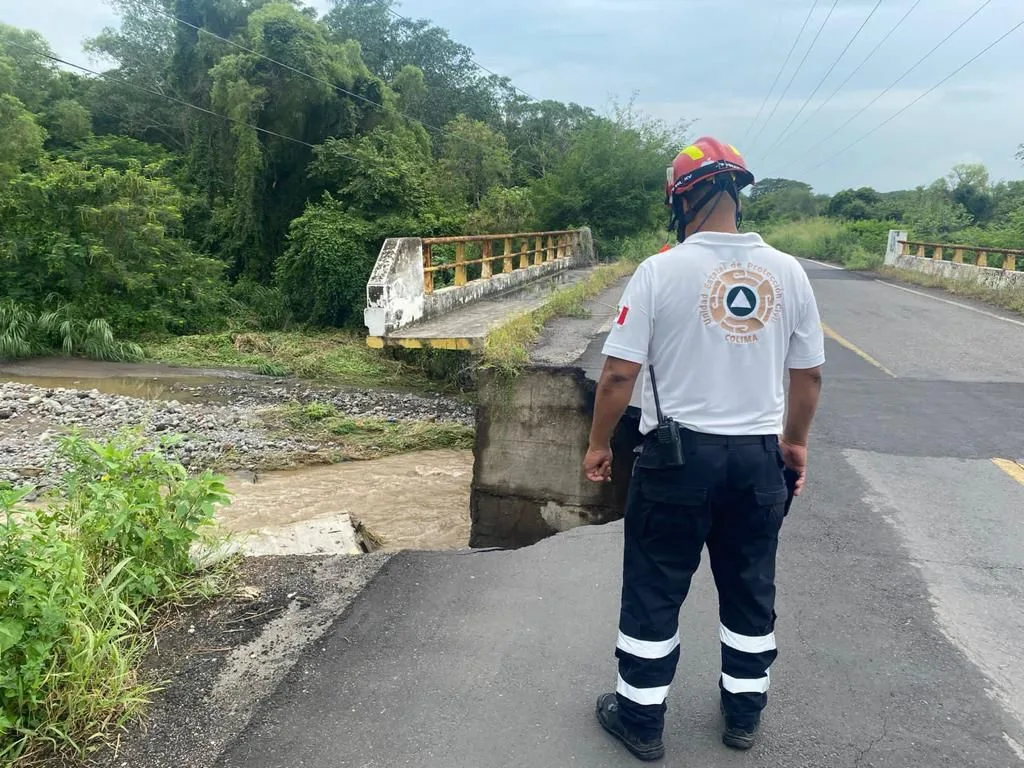 Luego de las fuertes lluvias originadas este domingo en algunos municipios del estado de Colima, el aumento del caudal de la corriente en el arroyo El Tecolotero, derrumbó la barda de contención de un puente ubicado sobre el libramiento Los Limones, muy cerca de una planta cervecera en el municipio capitalino.