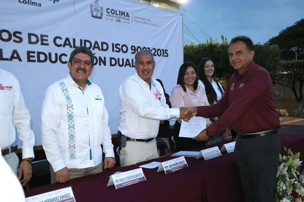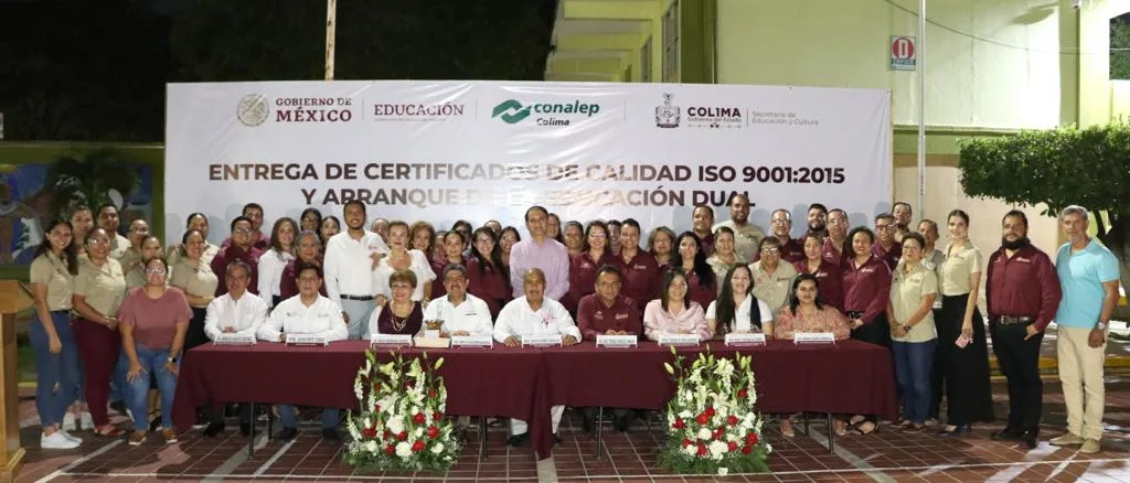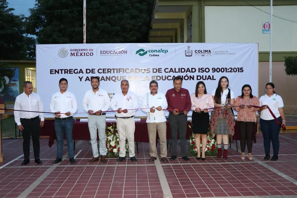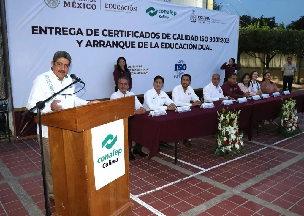 El secretario de Educación y Cultura del Gobierno del Estado de Colima, Adolfo Núñez González, presidió la ceremonia de entrega de certificados de calidad, así como el arranque de la modalidad de Educación Dual en el Colegio Nacional de Educación Profesional Técnica (Conalep), y constató cómo avanza el proceso educativo de excelencia en esta institución de educación media superior.