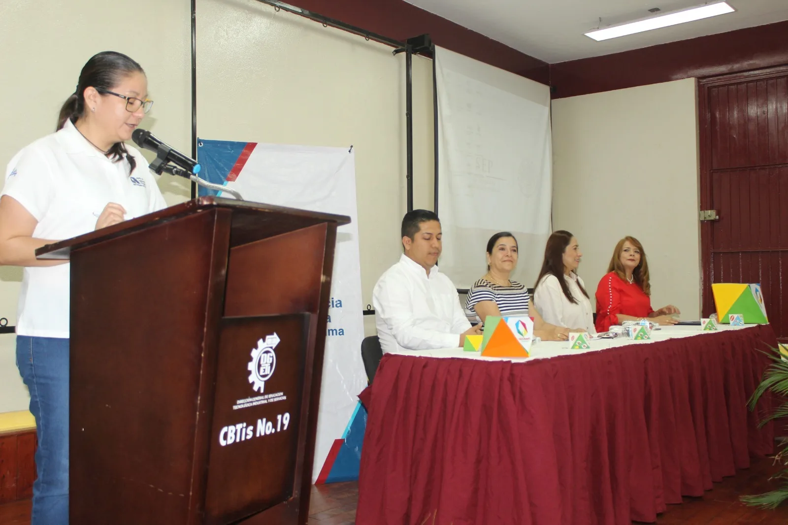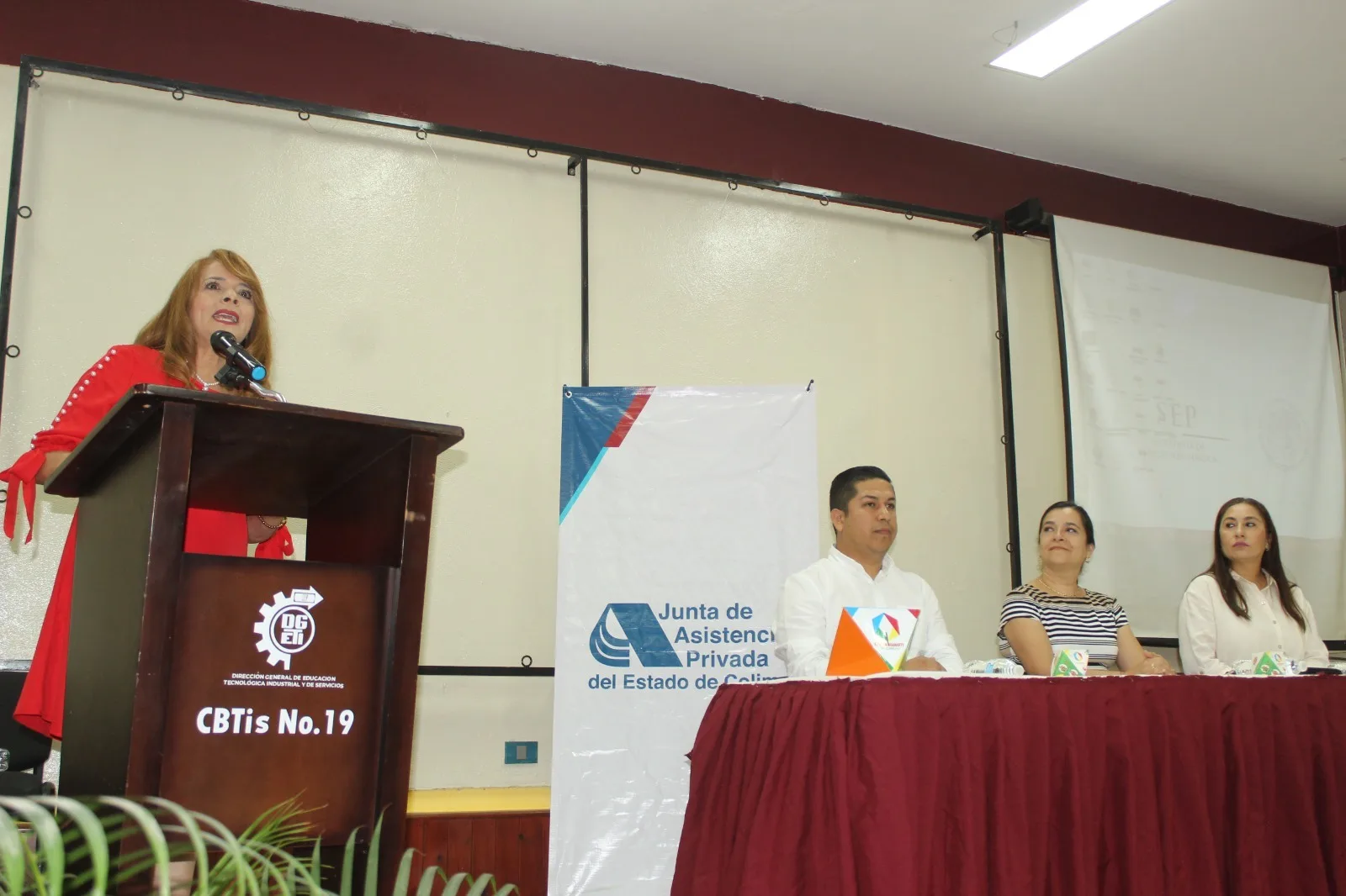 Al evento asistieron María Luisa González André, presidenta de la JAP; María Isabel Zamora George, directora del CBTis 19; y en representación de Teresa de Jesús Ramírez, titular del enlace educativo en el estado, acudió José Tapia Gómez; así como Dulce Lina Campos Grimaldi, directora general del DIF Municipal de Colima.