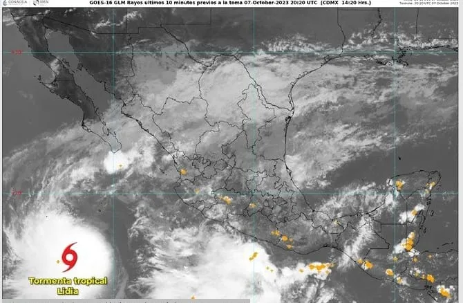 El centro de la tormenta tropical ‘Lidia’ se ubicó la tarde de este sábado a 925 kilómetros al oeste-suroeste de Manzanillo y durante las próximas horas su amplia circulación ocasionaría lluvias puntuales de muy fuerte a intensas y oleaje de uno a tres metros en costas de Colima y Jalisco, con precipitaciones fuertes también en Sinaloa y Nayarit, informó el Servicio Meteorológico Nacional (SMN).