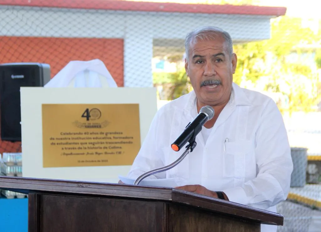 El secretario de Educación y Cultura del Gobierno del Estado de Colima, Adolfo Núñez González, encabezó la ceremonia por el cuadragésimo aniversario de fundación de la escuela secundaria general Jesús Reyes Heroles turno matutino, donde resaltó la importancia que tiene hoy la educación en Colima, con grandes apoyos para que niñas, niños, adolescentes y jóvenes estudiosos en general logren sus metas y aspiraciones.
