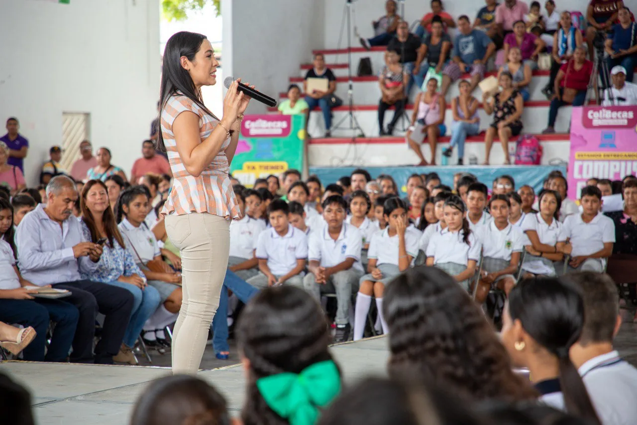 Les recomendó cuidar su computadora, porque, aunque no van a pagar por ella, se compraron con dinero público que es de todas y de todos; del dinero que pagan en sus impuestos todos, es como un regalo del pueblo de Colima para ustedes”. Entregó laptops gratuitas a las y los alumnos de las secundarias Antonio Barbosa Heldt, Jesús González Lugo, Justo Sierra, Sor Juana Inés de la Cruz, Felipe Valle Medina, Miguel Álvarez del Toro y de la Secundaria para Trabajadores.