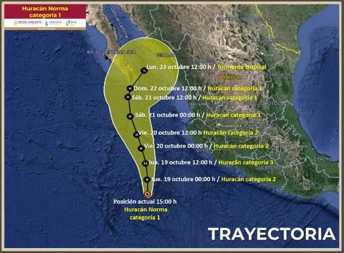 La Unidad Estatal de Protección Civil (UEPC) del Gobierno del Estado de Colima mantiene en vigilancia este fenómeno y reitera el llamado a la población a mantenerse informada acerca de la evolución, trayectoria y posibles afectaciones que el Huracán ‘Norma’ podría originar en la entidad, así como atender de manera inmediata las recomendaciones que emitan las autoridades.
