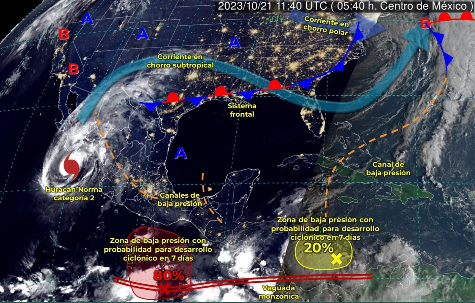 Respecto a las temperaturas máximas para hoy sábado, el SMN prevé que en el estado de Colima se podrían alcanzar registros de 30 a 35 grados Celsius, al igual que en Jalisco, Michoacán, Guerrero, Nayarit, Oaxaca, Chiapas Veracruz y Tabasco.