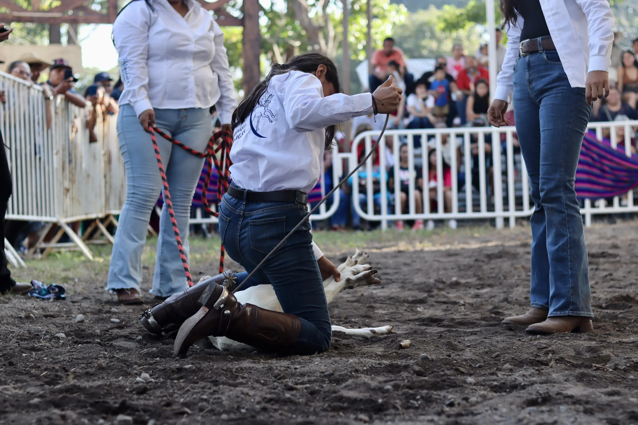 Con la participación de 22 pequeñas ante un nutrido y entusiasta público, se desarrolló la eliminatoria del concurso “Amarra la Chiva”, actividad de rodeo que se promociona en el teatro del Caballo en el marco de la Feria de Todos Santos Colima 2023.