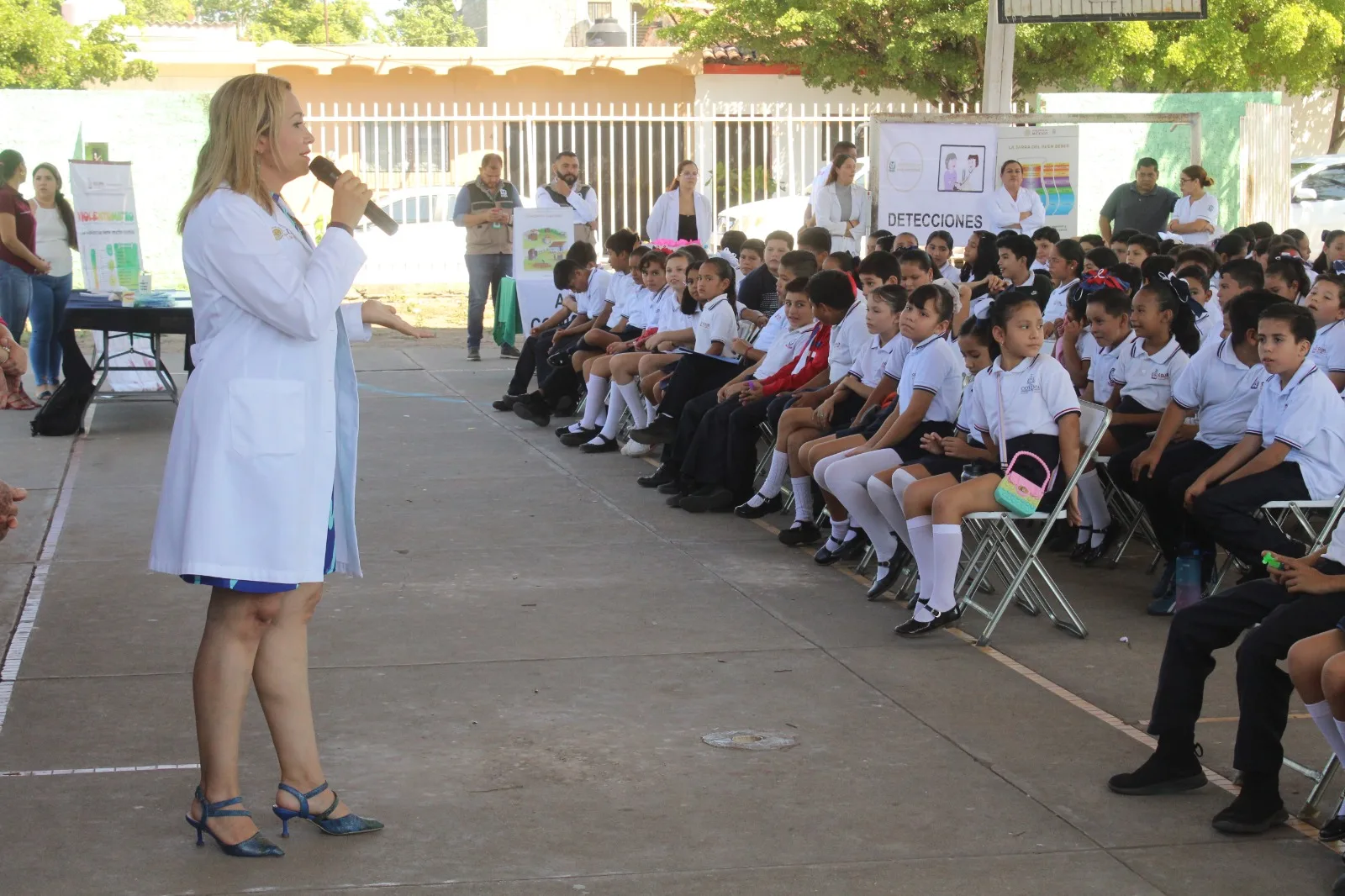 Asistieron el titular estatal del IMSS-Bienestar, Armando de la Mora Morfín, y representantes del IMSS, Issste, Décima Región Naval y Vigésima Zona Militar, se ofreció una Feria de la Salud con módulos que ofertaron detecciones de somatometría para búsqueda de bajo peso, sobrepeso, obesidad o desnutrición, agudeza visual y vacunación, así como información y orientación sobre alimentación correcta y actividad física, salud mental y adicciones, prevención de accidentes, prevención y control de vectores.