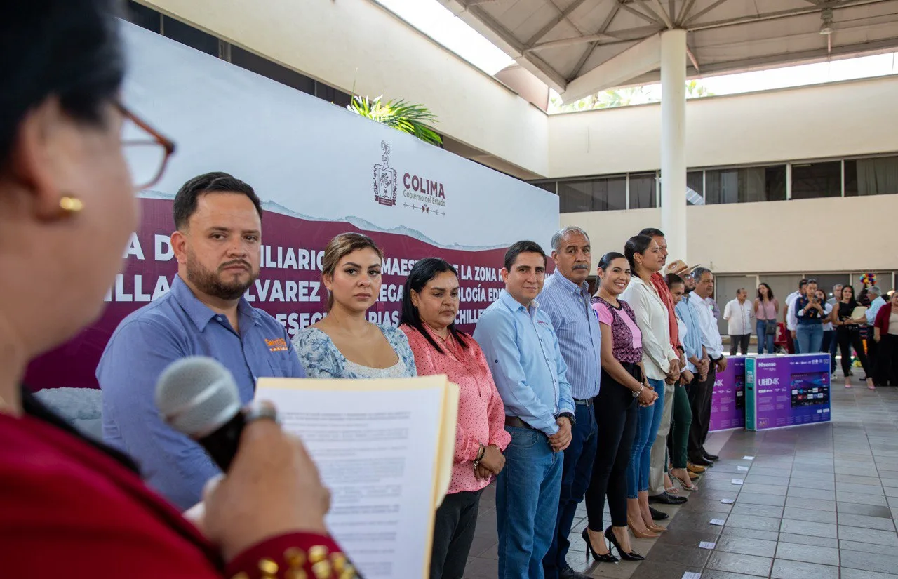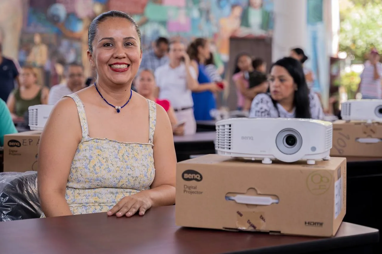 La gobernadora de Colima, Indira Vizcaíno Silva, entregó este miércoles en la Secretaría de Educación y Cultura 144 escritorios,144 sillas y sesenta video proyectores, como parte del programa Mobiliario Digno para Maestros, en el que se invirtió cerca de un millón y medio de pesos, entregados a maestras y maestros frente a grupo en la zona rural de Colima y Villa de Álvarez.