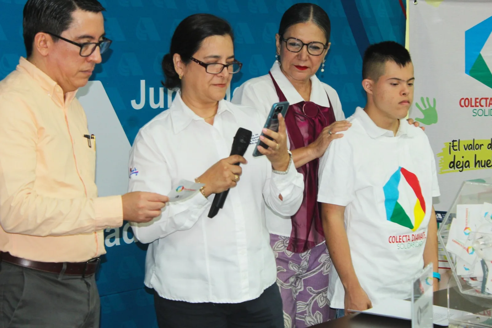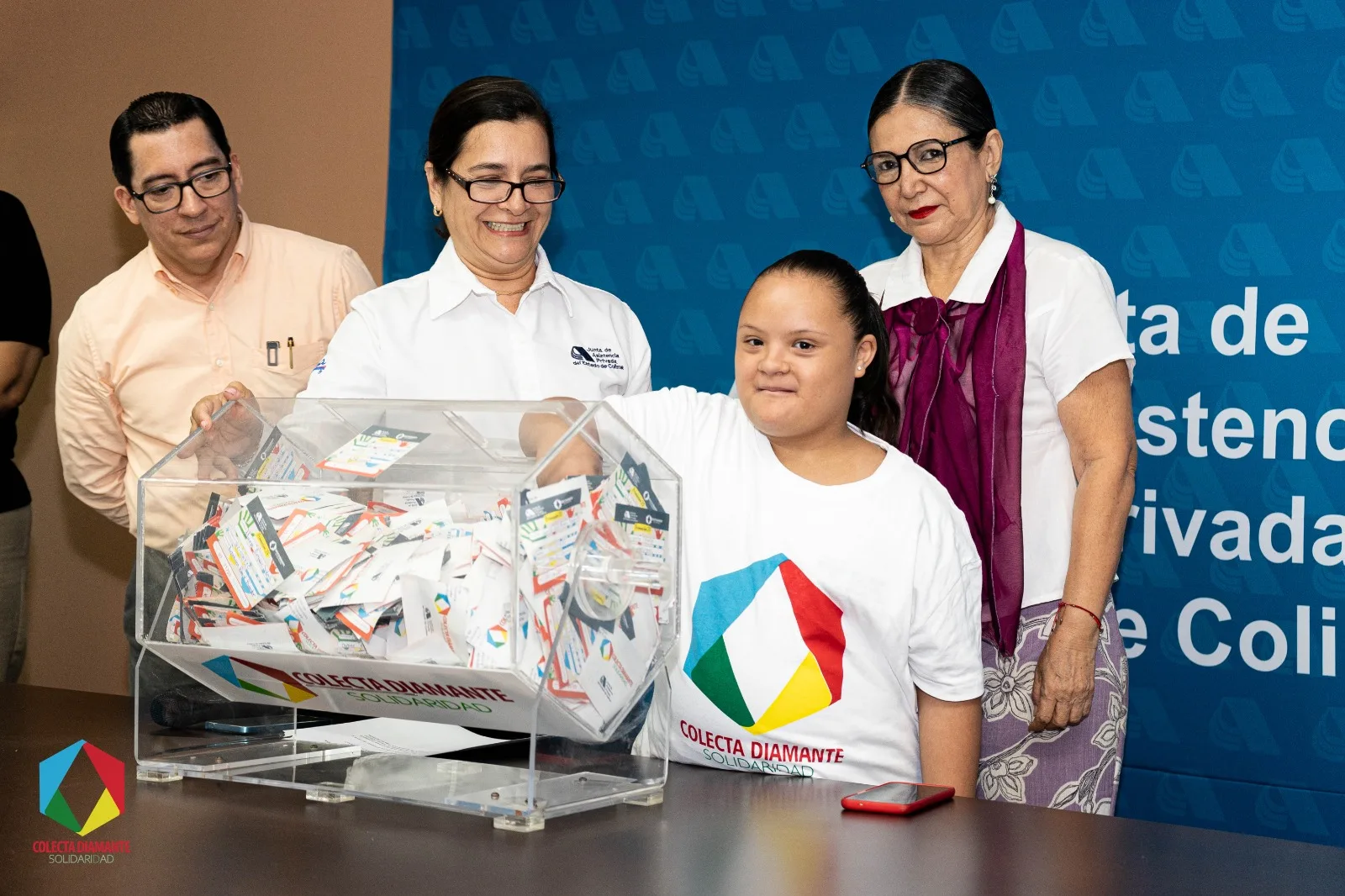 Se recibió el apoyo de jóvenes integrantes del Instituto Down de Colima (IAP), quienes se encargaron de seleccionar de la tómbola transparente los talones de las personas a quienes se les iba a hacer la llamada para, tras responder correctamente una sencilla pregunta y ganar el premio por el cual hayan sido elegidas.
