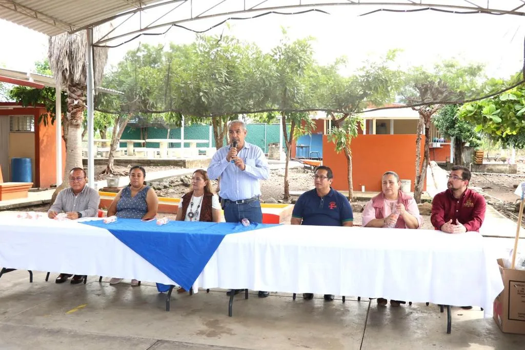 El titular de Educación y Cultura, en compañía de autoridades educativas, destacó el trabajo y la iniciativa por parte del Voluntariado de la Secretaría de Educación y Cultura que encabeza María Guadalupe Galindo Gómez, así como la colaboración de las y los trabajadores de la dependencia educativa y de diversos organismos públicos descentralizados (OPD’s), al sumarse con gran entusiasmo a esta campaña con la cual se beneficiaron alumnas y alumnos del Jardín de Niños “Carlos Vizcaíno Vázquez”, de la Escuela Primaria “Emilio Carranza” y estudiantes de la Telesecundaria Estatal “Crispín Ríos Rivera”.