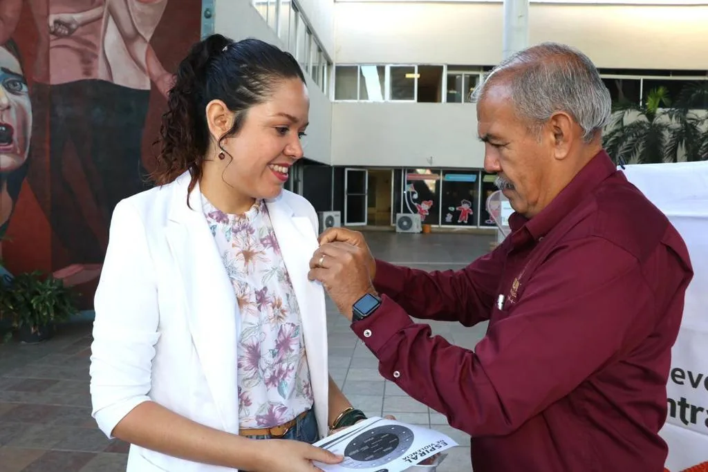En el marco del Día Internacional de la Eliminación de la Violencia contra las Mujeres, se llevó a cabo en la explana de la Secretaria de Educación y Cultura del Gobierno del Estado de Colima, la colocación del distintivo ‘Listón Naranja’ a las trabajadoras y los trabajadores de la dependencia por parte de autoridades educativas, encabezadas por el titular de esta dependencia educativa, Adolfo Núñez González.