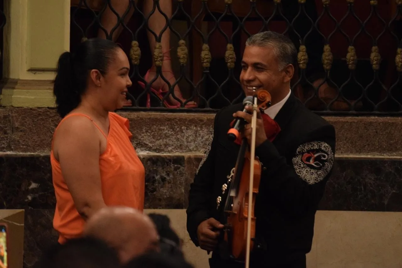 Con piezas románticas y clásicas que han dejado huella en la cultura popular, como Bésame mucho, Serenata Huasteca o ¿Quién te cantará, el Mariachi Santa Cecilia puso a cantar a quienes se dieron cita al Teatro Hidalgo, que lució lleno, en un espectáculo vibrante en el que músicos y asistentes interactuaron entre boleros, huapangos, sones y canciones rancheras en general.